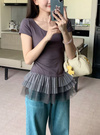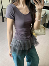 チュールドッキングサイドギャザーフリルトップスの商品詳細情報のページです。