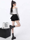 裾からインパンが覗くスカパン風デザインで、トレンドライクなルックが完成。