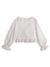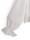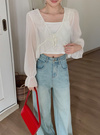 エアリーな印象のシアー素材で仕立てた、軽やかな着心地のボレロ。ネックラインのフリルやキャンディスリーブがフェミニンな雰囲気。