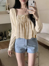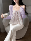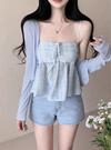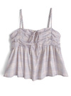 キャミは胸元にギャザーを寄せてリボンをトッピングし、立体的でガーリーな雰囲気に仕上げた。