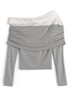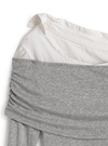 シャツとカットソーを重ね着したようなデザインが目を惹くこなれトップス。ドレープ感のある折り返しディテールが立体感のあるシルエットをメイク。