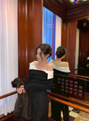 肩がチラッと見えるのも大人の色気を演出するポイント。