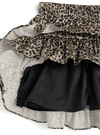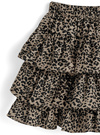 コーデのアクセントになる華やかなヒョウ柄のミニスカートが登場。3段に重ねたボリューミーなティアードフリルがガーリーな印象をプラス。