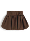 ハリのある生地で仕立てた、立体的なバルーンシルエットが魅力のスカート。ウエストマークができるフェイクレザーのベルト付きで、高見え&スタイルアップ効果も◎。