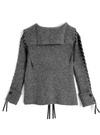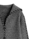セーラーカラー風の大きめ襟が目を惹く主役級のニットカーディガン。配色リボンのトリミングデザインでフェミニンなニュアンスをプラス。