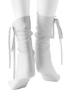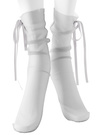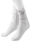 儚げなシースルーの透け感を味方につけたガーリーなソックス。華奢なリボンがワンポイントになって、思わず視線が集まるデザイン。