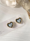 オーロラのような輝きのチップを閉じ込めたクリアハートが幻想的なピアス。少しゆがみを加えたゴールドの縁がアンティークっぽい。