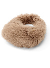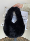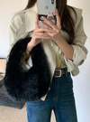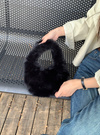 毛足の長いエコファー素材を使用した、上品でエレガントなハンドバッグ。コロンとしたラウンド型フォルムが女性らしい印象に。