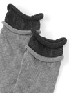 生地を重ねたような配色デザインが特徴のソックス。