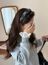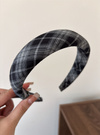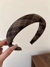 クラシカルな雰囲気のチェック柄生地で仕立てた、レトロガーリーなカチューシャ。丸みを帯びた立体感のあるフォルムが女性らしさを感じさせる。