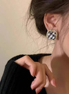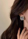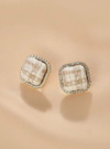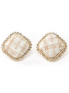 ツイード調ボタンをモチーフにしたクラシカルなデザインのピアス。キラキラのラインストーンで縁取ることで華やかさをプラス。