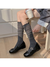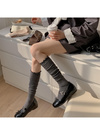 伸縮性抜群のリブ素材で履き心地の良いハイソックス。