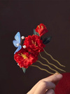 鮮やかな椿モチーフやバタフライをあしらった存在感抜群の髪飾り。