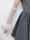 柔らかなシアー生地で仕立てた、ガーリームード漂うアームカバー。袖口にはレースを重ねてリボンを添え、ボリュームたっぷりに仕上げた。