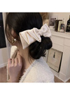 光沢のあるサテンリボンを使用した高見え間違いなしのバレッタ。存在感抜群のサイズ感で、ヘアアレンジのアクセントにぴったり。