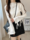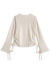 さりげない凹凸感が愛らしい、ワッフル調の柔らかなトップス。袖口にかけて施したリボンが、遊び心を効かせるワンポイント。