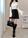 リボンスリーブジャガードハイネックトップスの商品詳細情報のページです。