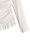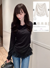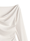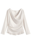 しっとりと滑らかな質感と、流れるようなドレープネックが魅力の、女性らしさ溢れるトップス。裾にはチュールをあしらい、さらにフェミニンな雰囲気を演出。