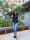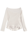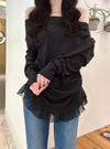 伸縮性のある生地なので、肩落としでオフショルにもアレンジできる。
