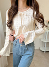 リボンジャガードフレアスリーブトップスの商品詳細情報のページです。