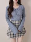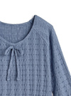 ジャガード調の、凹凸感を持たせた生地で作られたトップス。フロントにはリボンを添え、甘さを引き出しつつ首元綺麗に見せる。