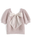 バックリボンシャギーニットトップスの商品詳細情報のページです。