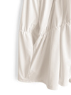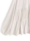 ギャザー切り替えを入れたフレアシルエットとふっくらスリーブで、女性らしく着こなせるデザイン。