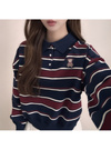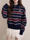 ボーダー柄テディベア刺繍ポロニットトップスの商品詳細情報のページです。