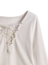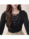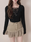 フロントの編み上げディテールがアクセントになったデザイントップス。胸元にシアー感のあるフラワーレースを重ね、甘さと色気が漂う雰囲気に仕上げた。