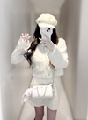 モコモコパールカーディガン×ミニスカートセットアップ[sm277]