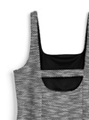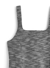 ミックス調の糸で編み立て、味わい深いニュアンスを引き出した。スクエアネックのキャミソールデザインがデコルテを美しく見せる。