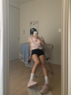 ガーリーさとカジュアルさを合わせて、甘辛ミックスに仕上げた一着。