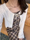 胸元に配したリボンが、ガーリーなアクセントを添える。