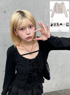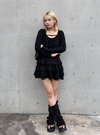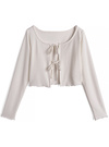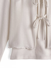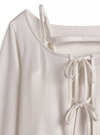 可憐な印象の透かし編みカーディガンは、フロントのダブルリボンや袖口と裾のメロウフリルがポイント。