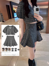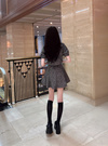 チェック柄カーディガン×インパン付きミニスカートカットツイードセットアップ[sm345]