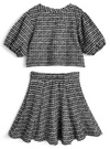 立体感のあるツイード素材で仕立てたクラシカルなセットアップ。