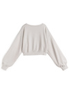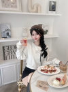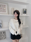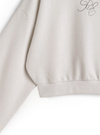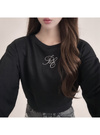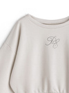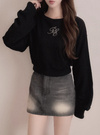 胸元にあしらったきらりと光るラインストーンロゴがアクセントのスウェット。ドロップショルダーがラフでこなれた雰囲気を演出。