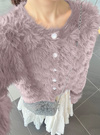 羽織るだけで愛らしい雰囲気をまとえるカーディガン。毛足の長いシャギーニットで、思わず触れたくなるような柔らかさ。