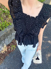 ドット柄フリルリボントップスの商品詳細情報のページです。