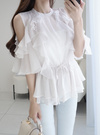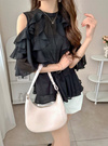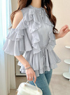 オープンショルダーフリルシフォンチュニックの商品詳細情報のページです。