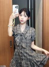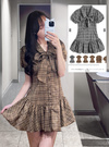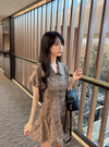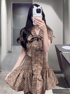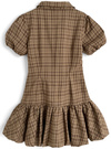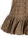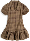 シックなチェック柄にバルーンシルエットが大人キュートな印象のミニワンピース。深めに開いたネックラインはデコルテを美しく見せ、程よい抜け感を演出。