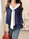 配色ボウタイノースリーブブラウスの商品詳細情報のページです。