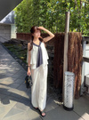 二枚重ねのようなレイヤード風シルエットで、ニュアンスを引き立てる。