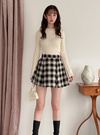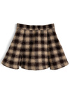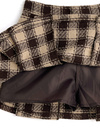 レトロムード漂うブロックチェック柄のツイードミニスカート。ふわりと広がるフレアラインが女性らしいシルエットをメイク。