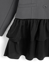 マニッシュなテーラードジャケットにフリルデザイン加えた大人フェミニンなアイテム。