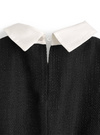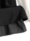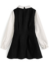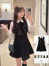 柔らかなブラウス生地とツイードを組み合わせた品のあるミニワンピース。取り外し可能なリボン付きで、ガーリーにもエレガントにもアレンジができる。