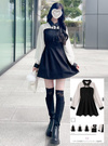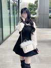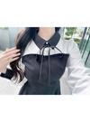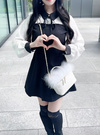 胸元のフリルディテールやパールボタン、付属のリボンが甘さを加えるポイント。