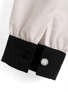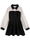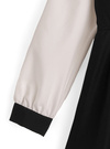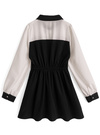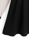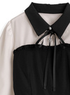 柔らかなブラウス生地とハリのあるツイル生地を組み合わせたミニワンピース。コントラストを効かせた配色の切り替えデザインが魅力的。