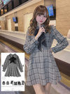 リボン付きチェック柄ミニワンピース[tg911]