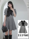 ツイード調素材で仕立てた上品で可憐な雰囲気漂うミニワンピース。きちんと感のある襟付きデザインで、付属のボウタイリボンを結べばお嬢様っぽい着こなしに。